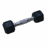Гантель обрезиненная с хромированной ручкой. Вес гантели 8 кг, в комплекте 2 штуки (пара). Ручка с насечками для предотвращения скольжения. Гексагональная гантель – обрезиненная модель удобной конструкции. Гантель имеет много граней и не катается по полу. Обрезиненная поверхность не царапает пол при ударе. Гантели используются в фитнесе, лечебной физкультуре, бодибилдинге и других спортивных тренировках. Внутренний материал сталь Внешний материал резина Материал хвата сталь Длина хвата 12,5 см  Диаметр хвата 2,8 см  Вес гантели (1 шт) 8 кг  Размер упаковки (2 шт / комплект)   Объем упаковки          Вес брутто   Бренд  DFC  Страна производства  Китай  Гарантия  12 месяцев